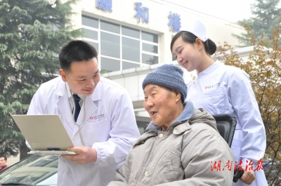 長(zhǎng)沙市中心醫(yī)院醫(yī)務(wù)人員為患者講解病情,分析檢查檢驗(yàn)結(jié)果,宣講檢查檢驗(yàn)結(jié)果互認(rèn)政策。
