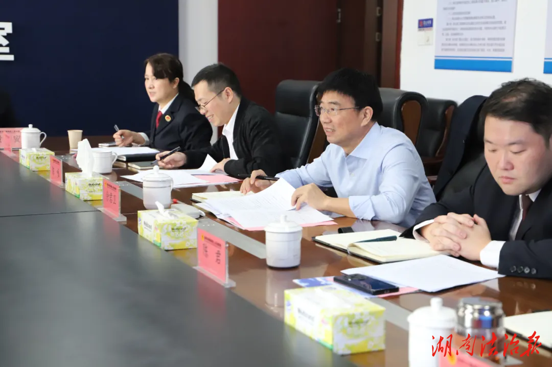 湖南法治報(bào)訊(通訊員 周銘)為進(jìn)一步增強(qiáng)跨區(qū)域檢察溝通協(xié)作,拓寬思路,共享經(jīng)驗(yàn),共促刑事執(zhí)行檢察工作高質(zhì)量發(fā)展,10月14日,遼寧省錦州市城郊地區(qū)人民檢察院黨組書記、檢察長葉向東一行6人,蒞臨岳陽市荊劍地區(qū)人民檢察院開展刑事執(zhí)行檢察業(yè)務(wù)交流學(xué)習(xí)。作為今年3月岳陽市荊劍地區(qū)人民檢察院赴錦州市城郊地區(qū)人民檢察院學(xué)習(xí)后的“雙向交流”,此次活動(dòng)以“實(shí)地觀摩 + 座談研討”形式,讓兩院再度攜手,共探刑事執(zhí)行檢察提質(zhì)路徑。