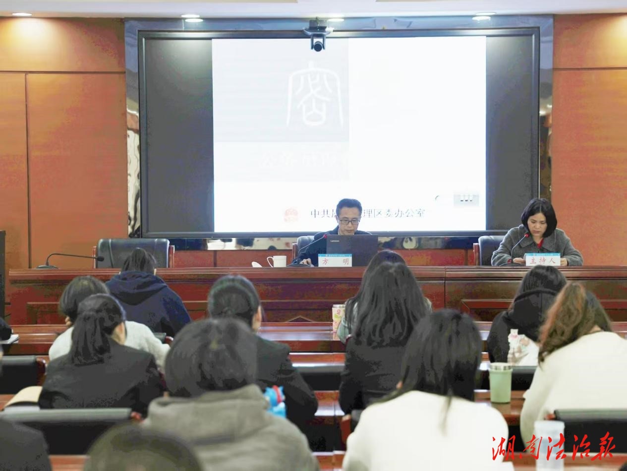 湖南法治報(bào)訊(通訊員 蔡艷)為切實(shí)強(qiáng)化干警保密意識(shí),筑牢工作安全防線,11月26日,屈原管理區(qū)人民法院邀請屈原管理區(qū)黨委、管委辦公室分管日常工作的副主任方明為全院干警進(jìn)行了一次保密工作專題培訓(xùn),政治部負(fù)責(zé)人柳芳玲主持。
